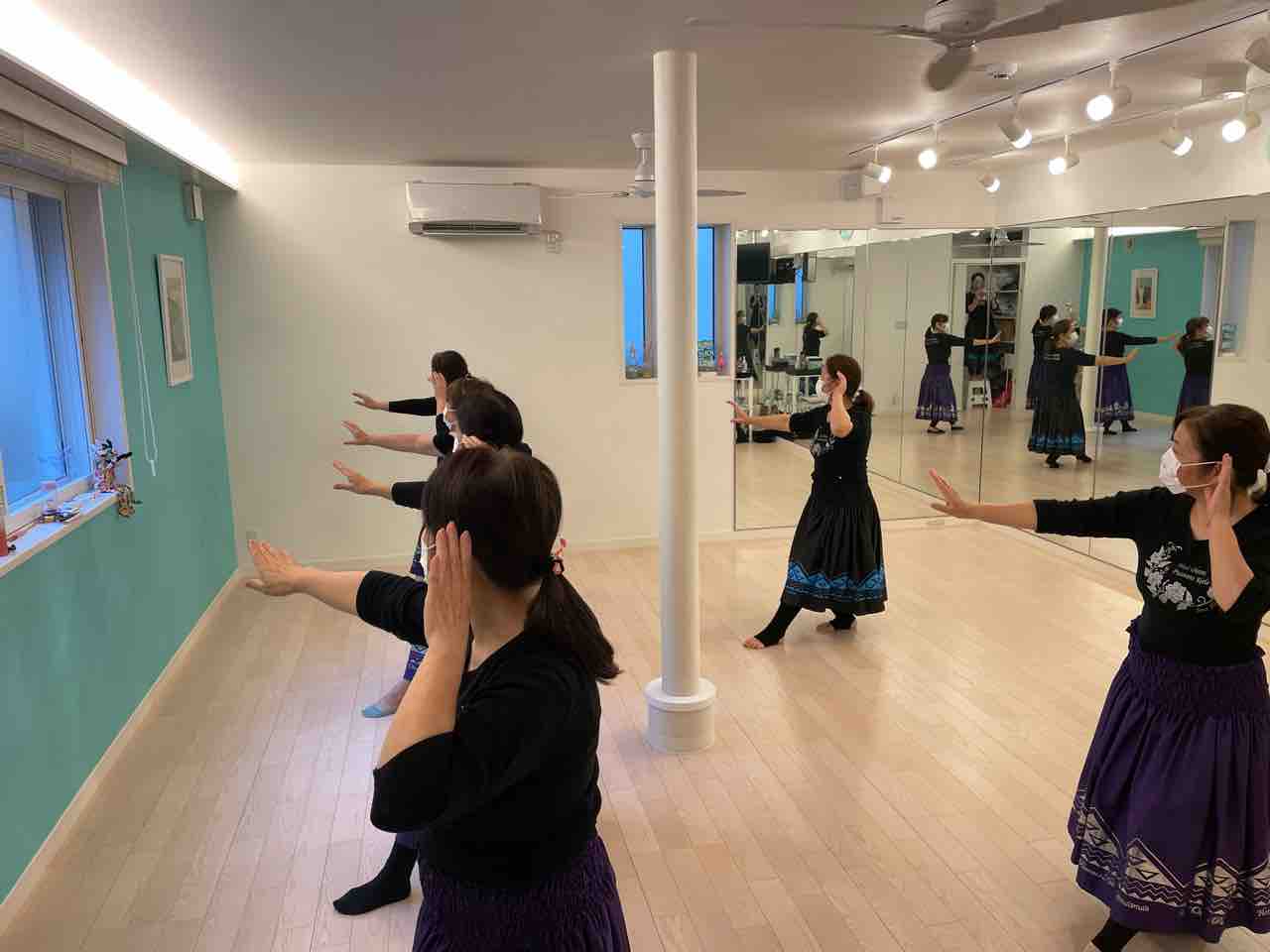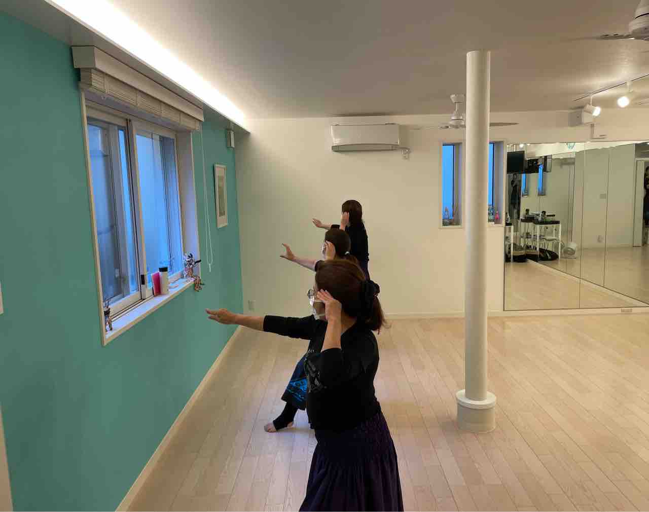 鏡を見ないで踊る練習なので、窓に向かって🤣