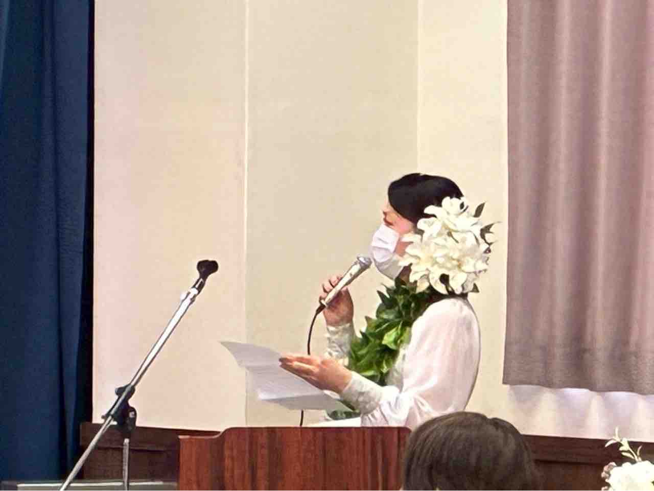 本校代表でめぐちゃんにお願いしましたが、あまりに泣いて手紙が読めないので、私がそばにいきました。